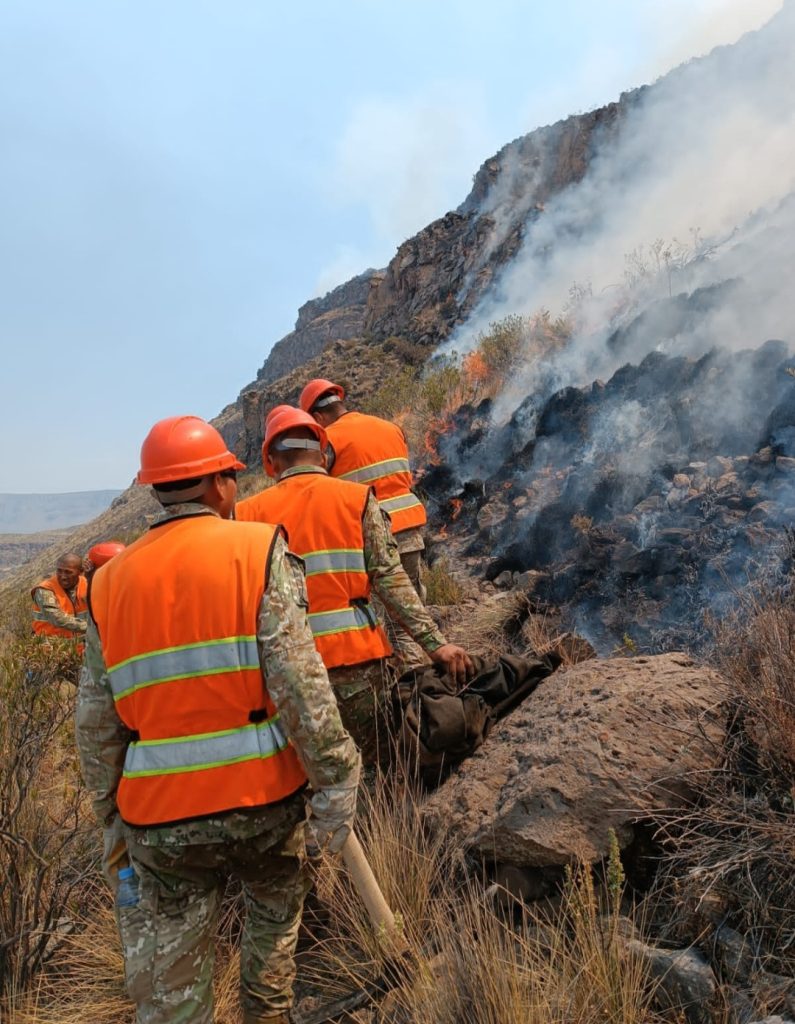 Se informó, que el personal militar viene trabajando en coordinación con autoridades regionales, provinciales y locales, con la finalidad de sofocar el fuego y este no continúe avanzando poniendo en riesgo las áreas naturales y de cultivo de la zona.