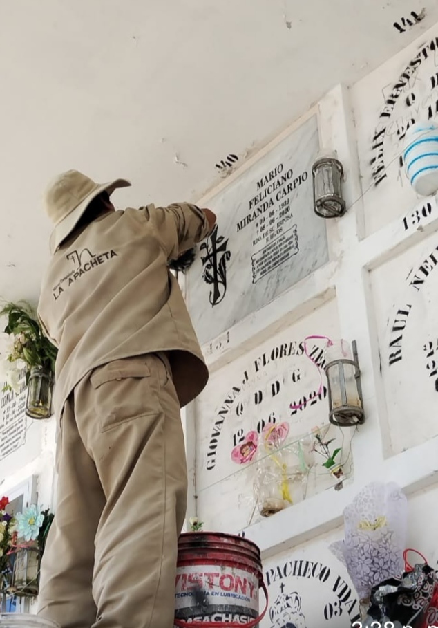 La Sociedad de Beneficencia de Arequipa, a través de la administración del Cementerio La Apacheta, viene brindado a la ciudadanía que tiene a sus difuntos descansando en este campo santo, el servicio de mantenimiento de nichos, colocación de lapidas, rejas, espejos, cambio de chapas y demás accesorios.